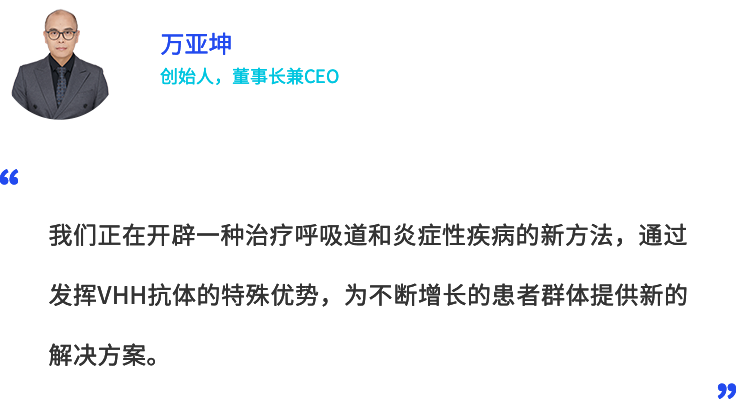 公司采用先进的 VHH 平台,充分发挥纳米抗体的优势,构建了高度差异化的抗体药物平台,包括吸入型抗体平台、口服抗体平台以及双/多抗平台。z6com人生就是搏的产品管线涵盖了FIC临床II期吸入IL-4Rα纳米抗体、临床I期吸入TSLP纳米抗体及多个TL1A双/多抗和口服管线,适应症涉及哮喘、慢性阻塞性肺病(COPD)和炎症性肠病(IBD)等。