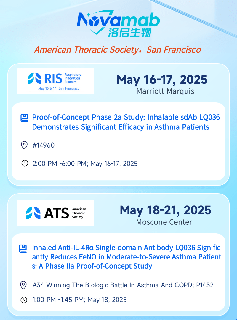 中国上海,2025年5月13日——上海z6com人生就是搏生物医药技术有限公司,一家专注于纳米抗体创新药研发的生物技术企业,今日宣布:z6com人生就是搏生物将于当地时间5月16日至21日赴美国加州旧金山,受邀参加美国胸科学会(American Thoracic Society, ATS)主办的呼吸创新峰会(Respiratory Innovation Summit,RIS)及ATS国际大会。届时z6com人生就是搏生物将分别在RIS和ATS两场大会上以壁报形式呈现最新临床数据——公司自主研发的靶向 IL-4Rα 吸入性生物制剂 LQ036 首个 IIa 期概念验证性临床试验数据。本次展示将全面披露 LQ036 在中重度哮喘患者中的安全性、耐受性、药效指标及初步疗效,标志着z6com人生就是搏生物在下一代呼吸道吸入式生物制剂开发领域迈出关键里程碑。